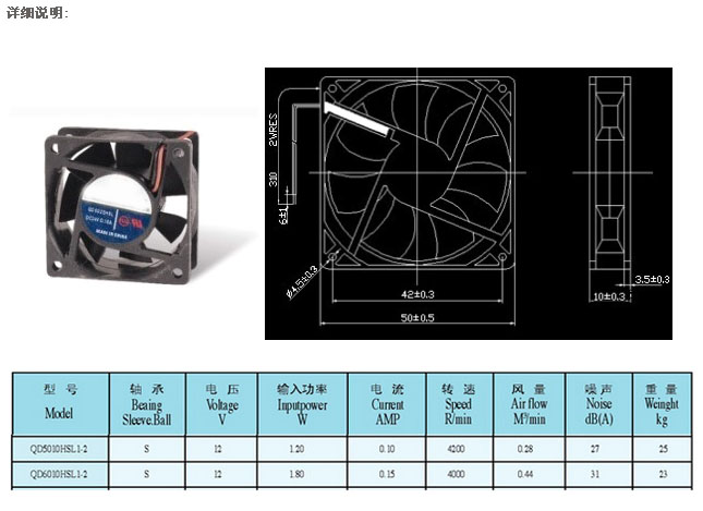 詳細信息 D5010HSL1-2,QD6010HSL1-2,直流風(fēng)機