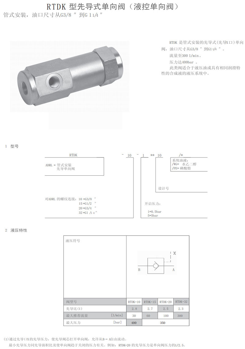 RTDK-10-1-10,RTDK-15-1-10,RTDK-20-5-10,RTDK-32-5-10,先導式單向閥