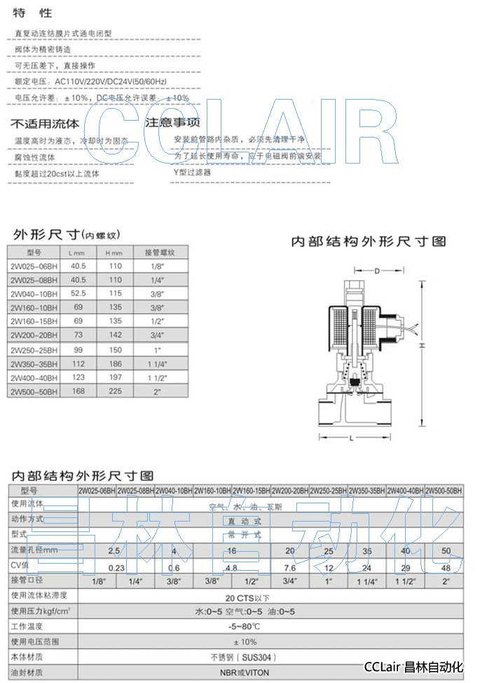 2W025-06BH,2W025-08BH,2W040-10BH,2W160-10BH,不銹鋼二位二通直動(dòng)式電磁閥(常開(kāi)型)