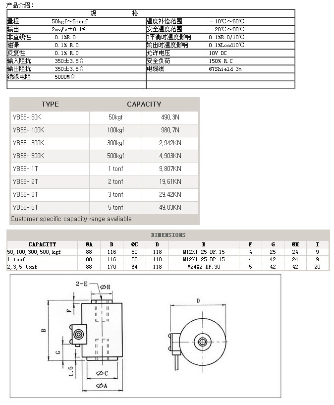 YB56-50K,YB56-100K,YB56-300K,YB56-500K,YB56-1T,YB56-2T,setech稱(chēng)重傳感器