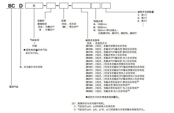 BCD6*5,BCD6*10,BCD6*15,BCD6*20,BCD6*25,BCD6*30,BCD8*5,BCD8*10,BC系列基礎氣缸--兩端出桿氣缸