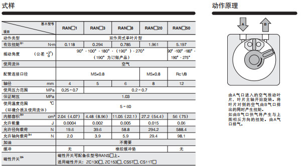 RAN1-90,RAN1-100,RAN1-180,RAN1-270,RAN3-90,RAN3-100,RAN3-180,旋轉式執行元件