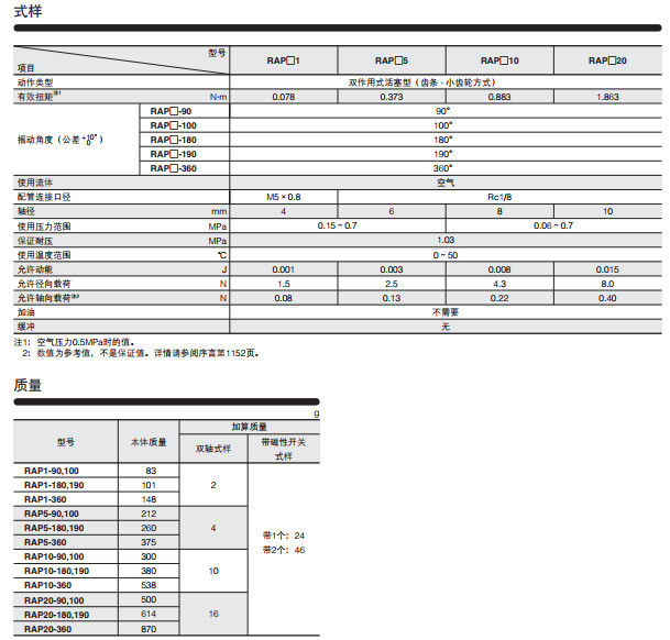 RAP1-90,RAP1-100,RAP1-180,RAP1-190,RAP1-360,RAP5-90,RAP5-100,旋轉式執行元件