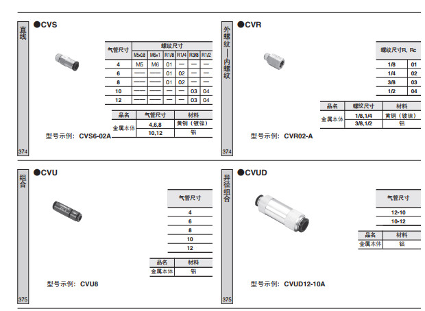 CVS4-M5A,CVS4-M5B,CVS4-M6A,CVS4-M6B,CVS4-01A,CVS4-01B,CVS6-01A,單向閥