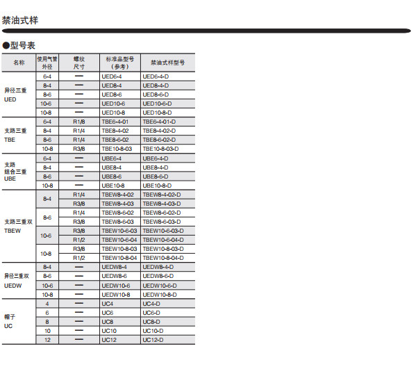 TS4-M50-D,TS4-M5-D,TS4-M6-D,TS4-01-D,TS4-02D,TS6-M5-D,快速接頭標準型 禁油式樣