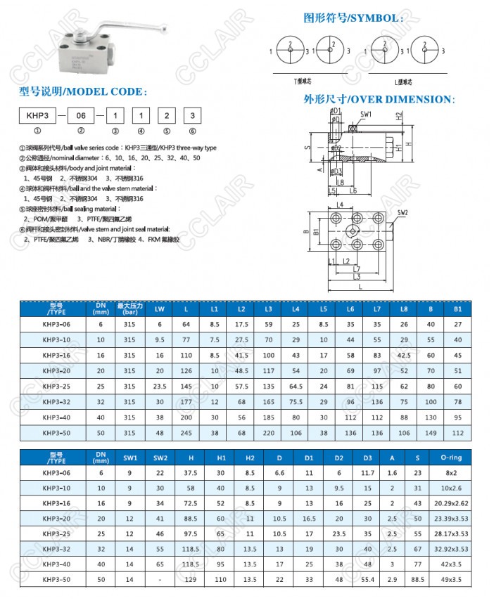 KHP3-06,KHP3-10,KHP3-16,KHP3-20,KHP3-25,KHP3-32,KH3-40,KHP3-50,KHP3,板式三通球閥