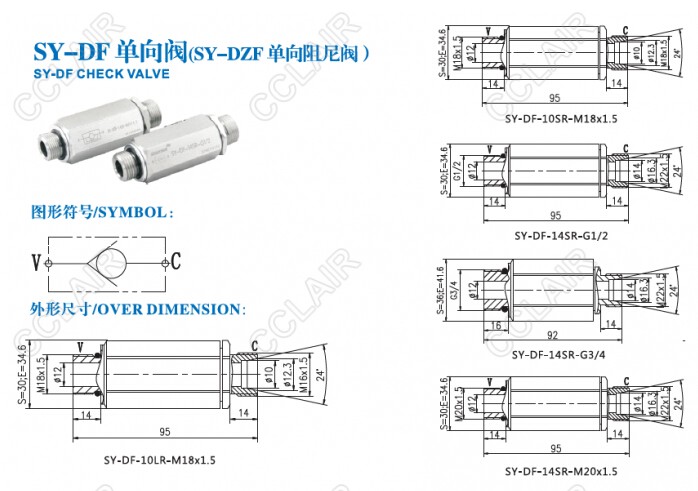 SY-DF-10LR-M18*1.5,SY-DF-10SR-M18*1.5,SY-DF-14SR-G1/2,SY-DF-14SR-G3/4,SY-DF,單向閥