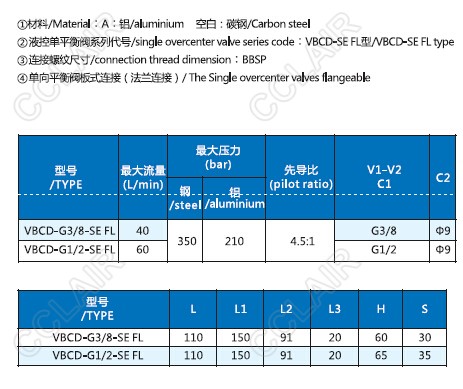 VBCD-G3/8-SEFL,VBCD-G1/2-SEFL,VBCD-G3/8-SE-FL,VBCD-G1/2-SE-FL,VBCD-SE-FL,單向平衡閥