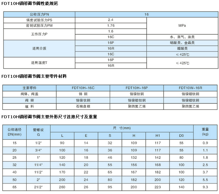 FDT40H-16C-DN15,FDT40H-16C-DN20,FDT10H-16C-DN25,鎖閉調節閥