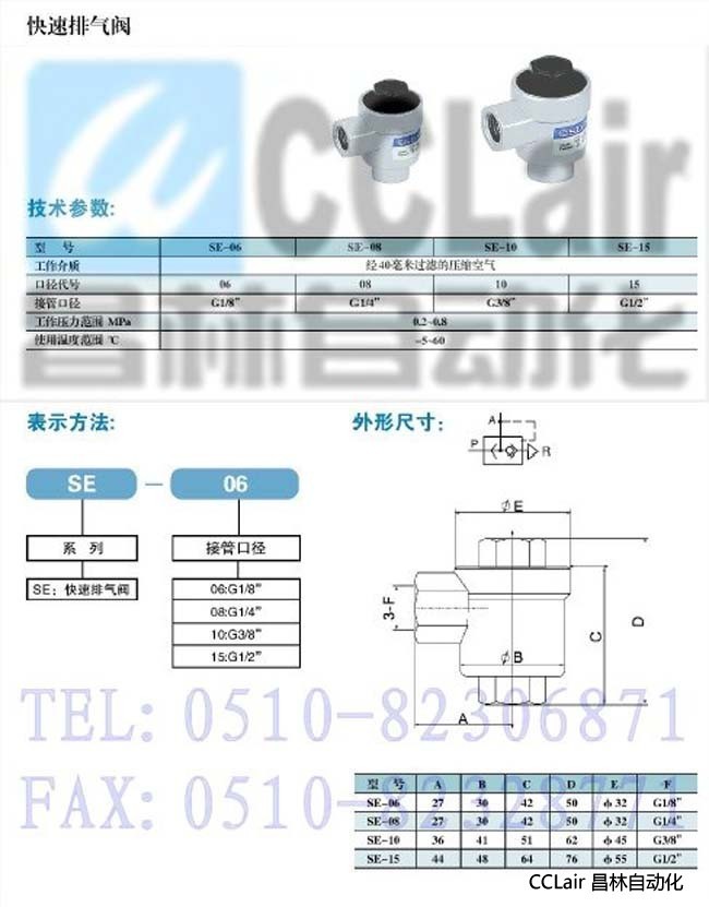SE-06,SE-08,SE-10, SE-15, 快速排氣閥