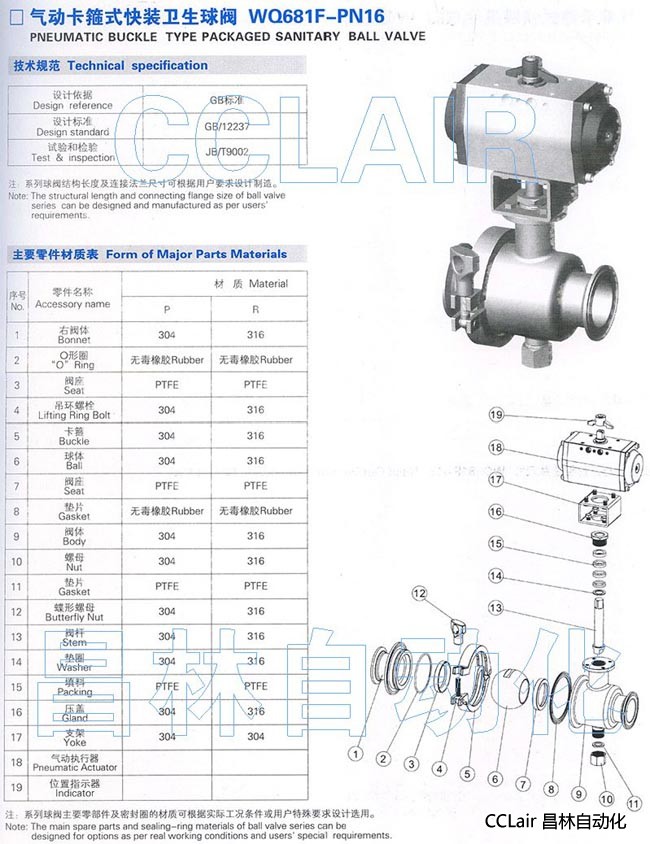詳細信息 WQ681F-PN16,氣動(dòng)卡箍式快裝衛生球閥