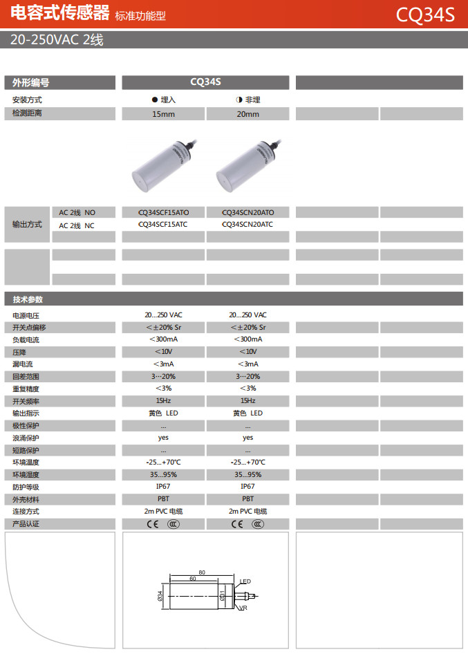 詳細信息 CQ34SCF15ATO,CQ34SCF15ATC,CQ34SCN20ATO,CQ34SCN20ATC,電容式傳感器