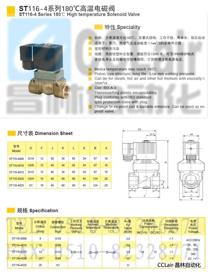 ST116-4008,ST116-4010,ST116-4015,ST116-4020,ST116-4025,高溫電磁閥