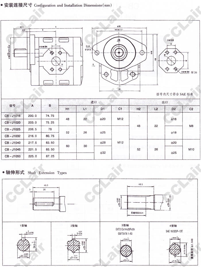 詳細信息 CB-J1016,CB-J1020,CB-J1025,CB-J1032,CB-J1040,CB-J1045,CB-J1050,CB-J1016-F1-1L,高壓齒輪油泵 YUCIYUKEN