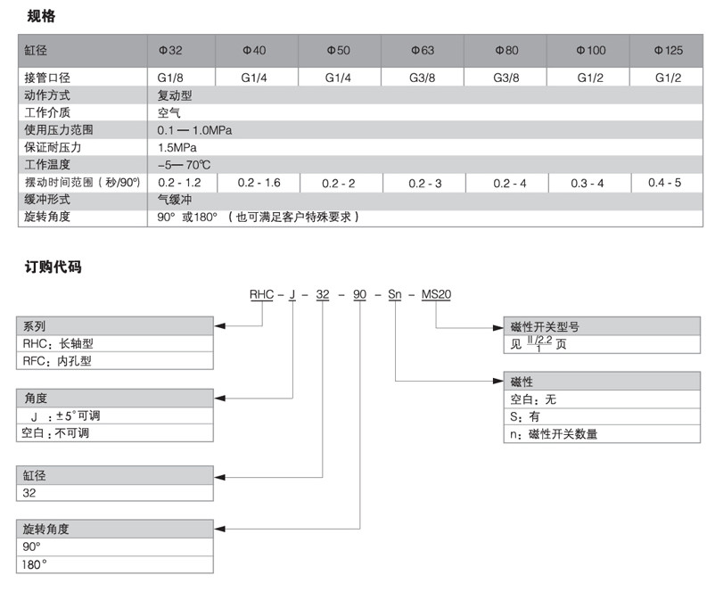RHCJ32-90,RHCJ32-180,RHCJ40-90,RHCJ40-180,RHCJ50-90,旋轉氣缸
