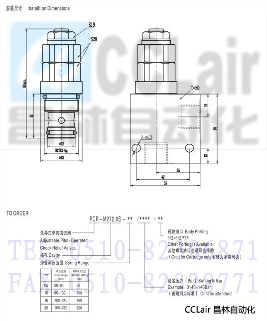 詳細信息 PCR-M272.0S,先導式單向溢流閥