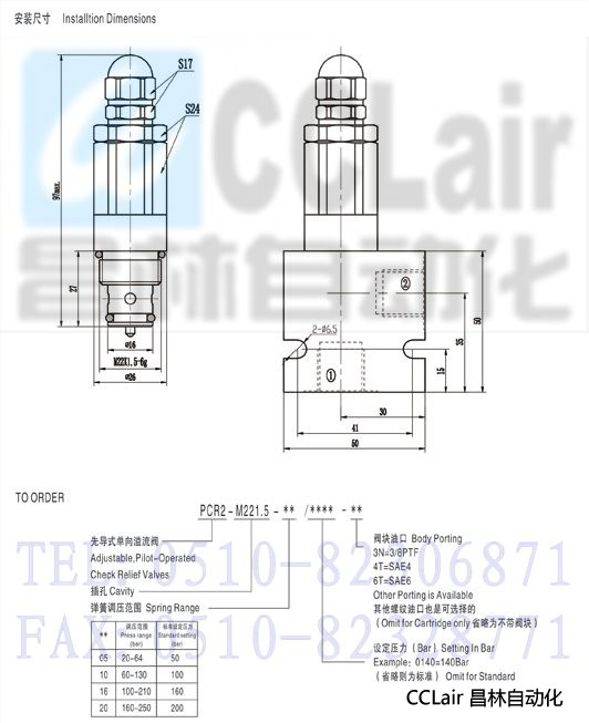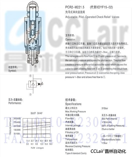 詳細信息 PCR2-M221.5,先導式單向溢流閥