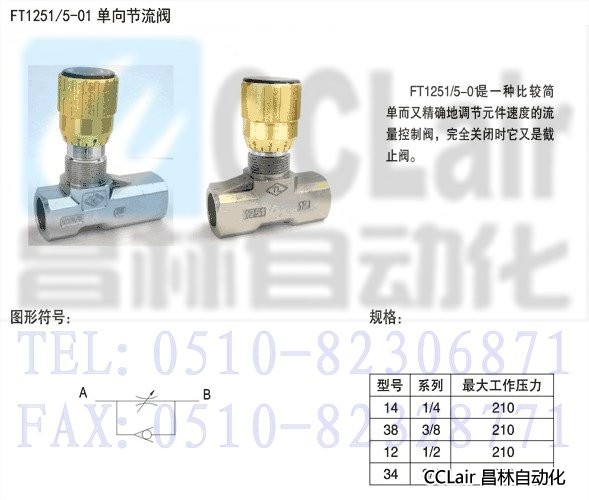 FT1251/5-01,管式單向節流閥
