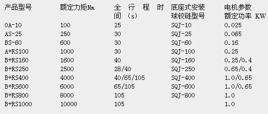 OA-10,AS-25,BS-60,A+RS100,B+RS160,B+RS250,B+RS400,B+RS600,B+RS800,B+RS1000,角行程電動(dòng)執行機構