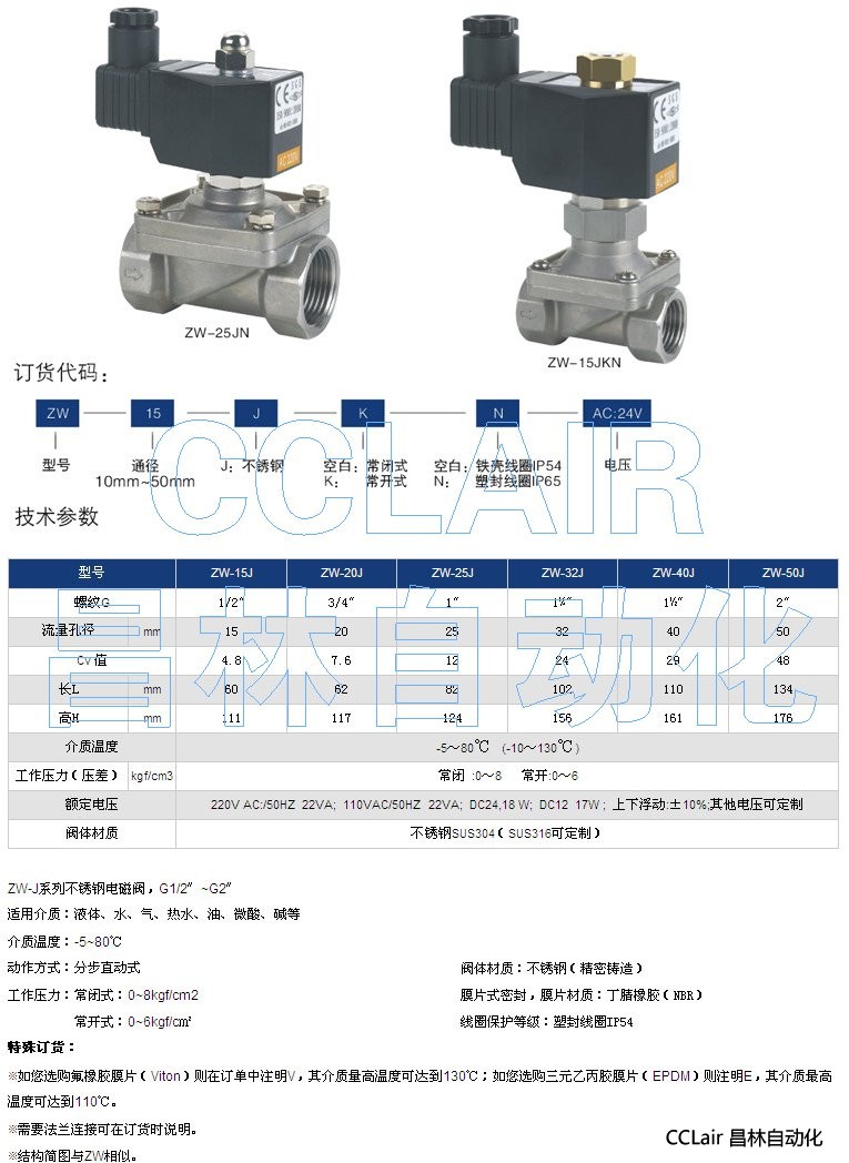 詳細信息 ZW-15J,ZW-20J,ZW-25J,ZW-32J,ZW-40J,ZW-50J,不銹鋼電磁閥,G1/2〞~G2