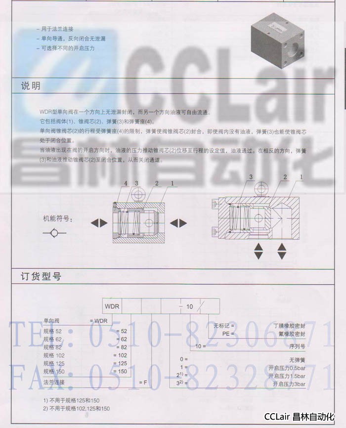 向閥 WDR82F1-10 WDR102F1-10 WDR125F1-10 WDR150F1-10 WDR型大通經(jīng)單向閥