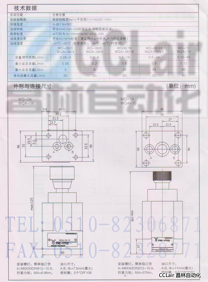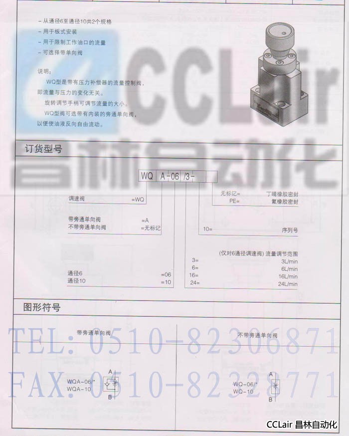 調速閥 WQA-06/3 WQA-06/6 WQA-06/16 WQA-06/24 WQ/WQA型調速閥