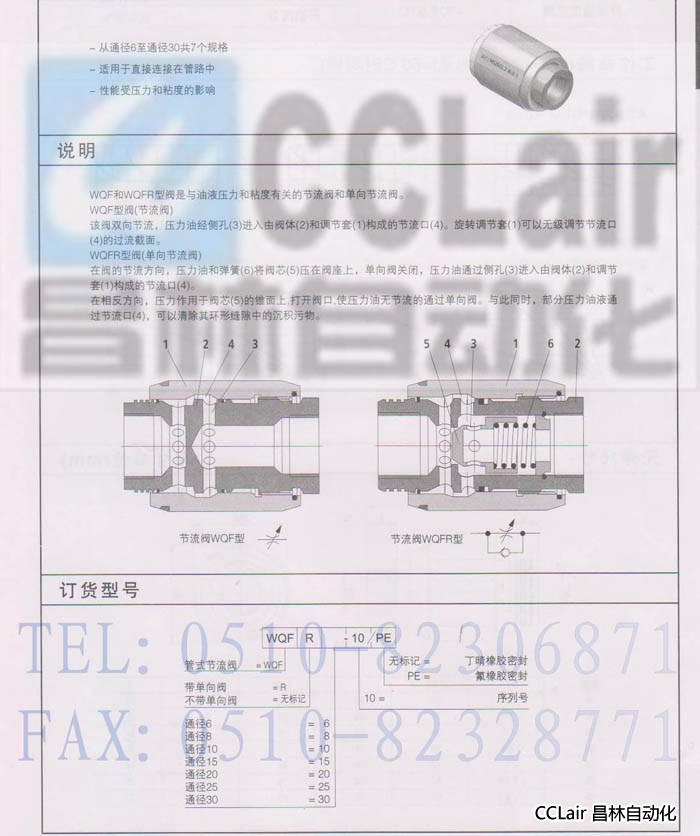 節流閥 WQF20-10 WQF25-10 WQF30-10 WQFR6-10 WQF/WQFR型節流閥/單向節流閥