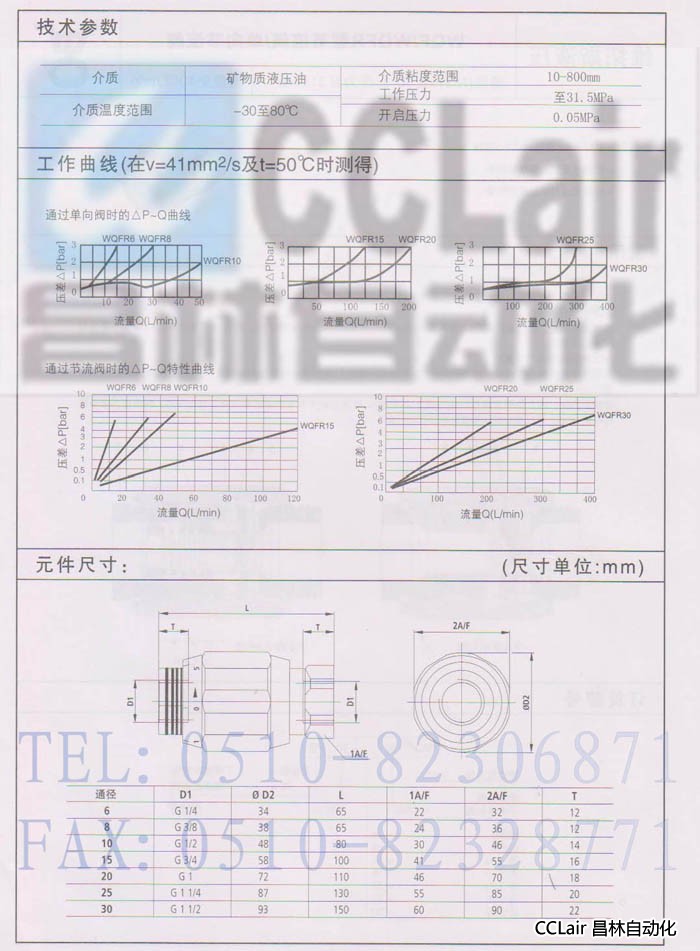 WQF6R-10,WQF8R-10,WQF10R-10,WQF15R-10,WQF20R-10,WQF25R-10,WQF30R-10,單向節流閥