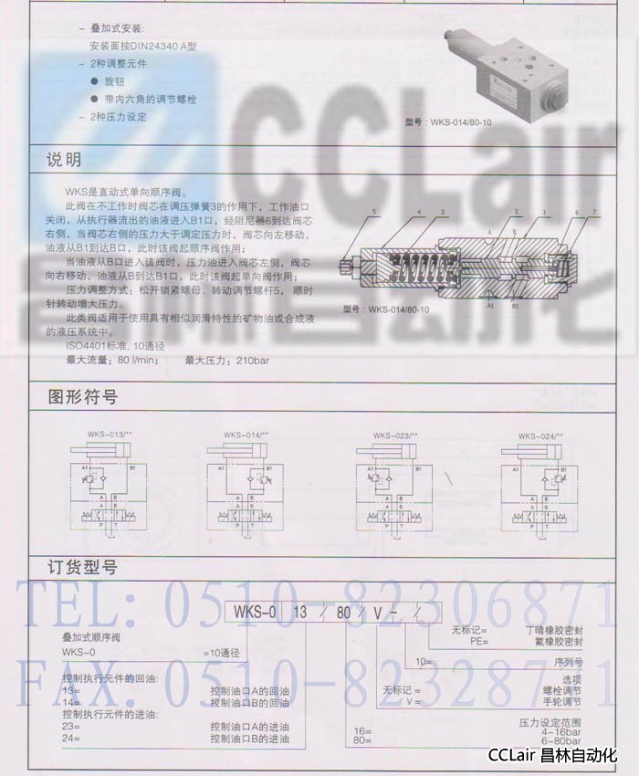 順序閥 WKS-023/16 WKS-023/80 WKS-024/16 WKS-024/80 WKS型疊加式順序閥