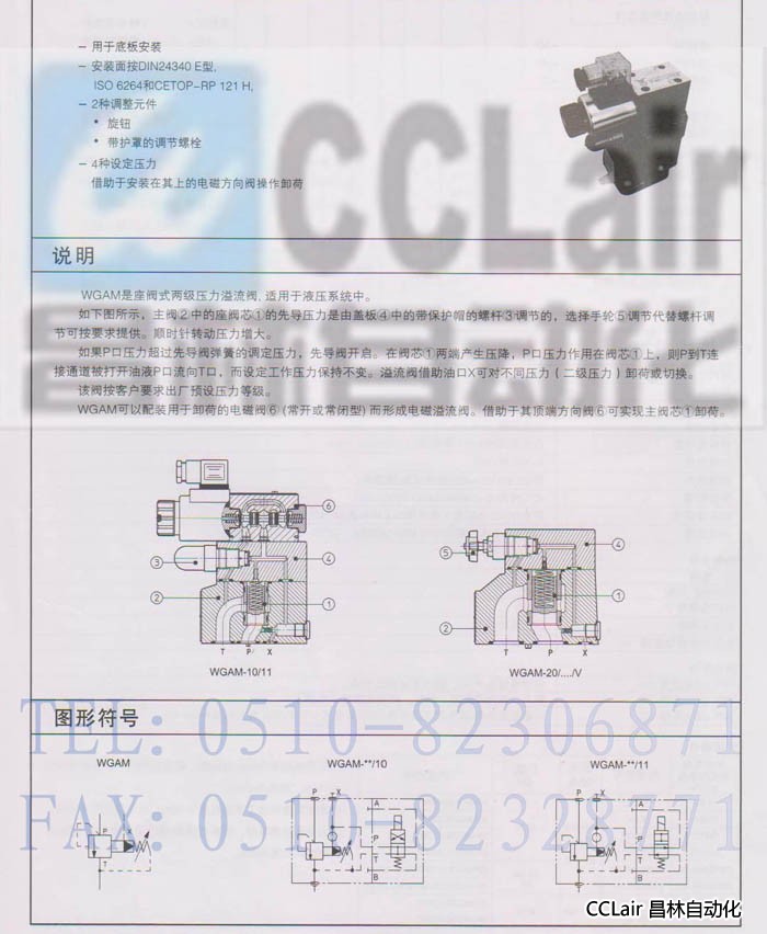 溢流閥 WGAM-10/11/50 WGAM-10/11/100 WGAM-10/11/210 WGAM-10/11/350 WGAM型先導式溢流閥