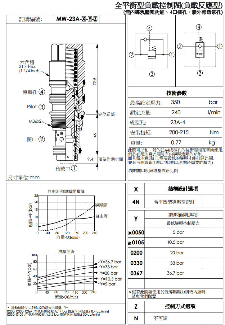 MW-23A-3N-0050-N,MW-23A-3N-0105-N,MW-23A-3N-0140-N,MW-23A-3N-0200-N,winner全平衡型負載控制閥
