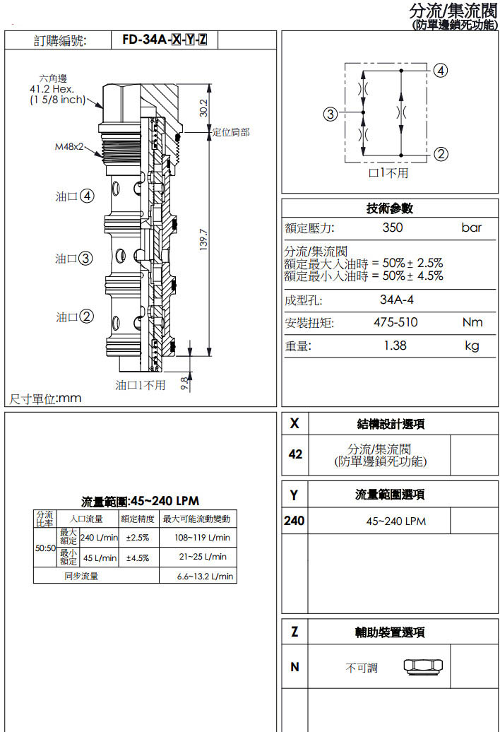 詳細信息 FD-34A-42-240-N,winner分流/集流閥