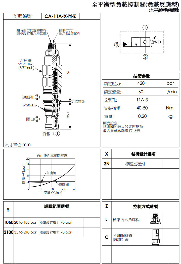 詳細信息 CA-11A-3N-1050-L,CA-11A-3N-2100-L,CA-11A-3N-1050-C,CA-11A-3N-2100-C,winner全平衡型負載控制閥