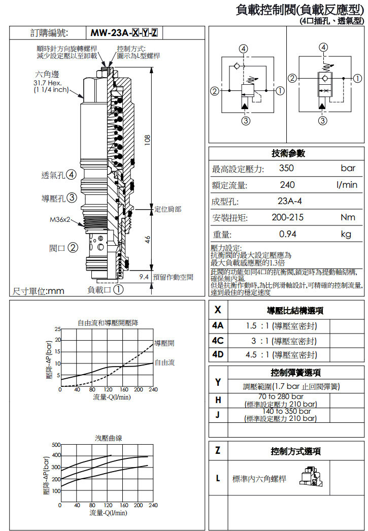 詳細信息 MW-23A-4A-H-L,MW-23A-4C-H-L,MW-23A-4C-J-L,MW-23A-4D-J-L,winner負載控制閥