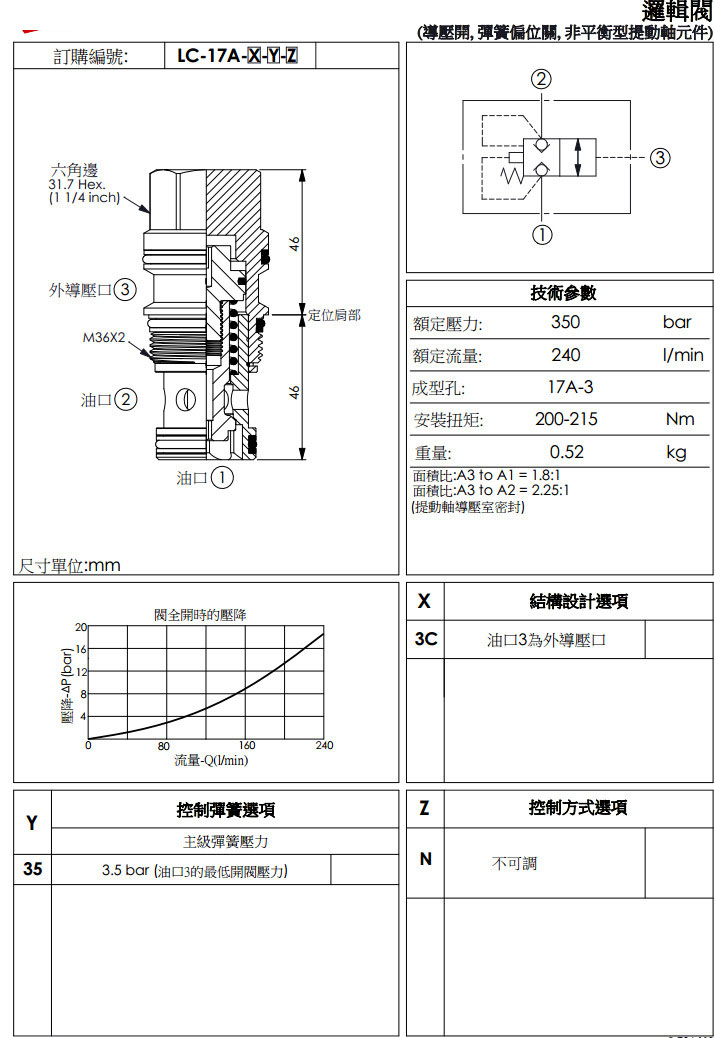 詳細信息 LC-17A-3C-35-N,winner邏輯閥