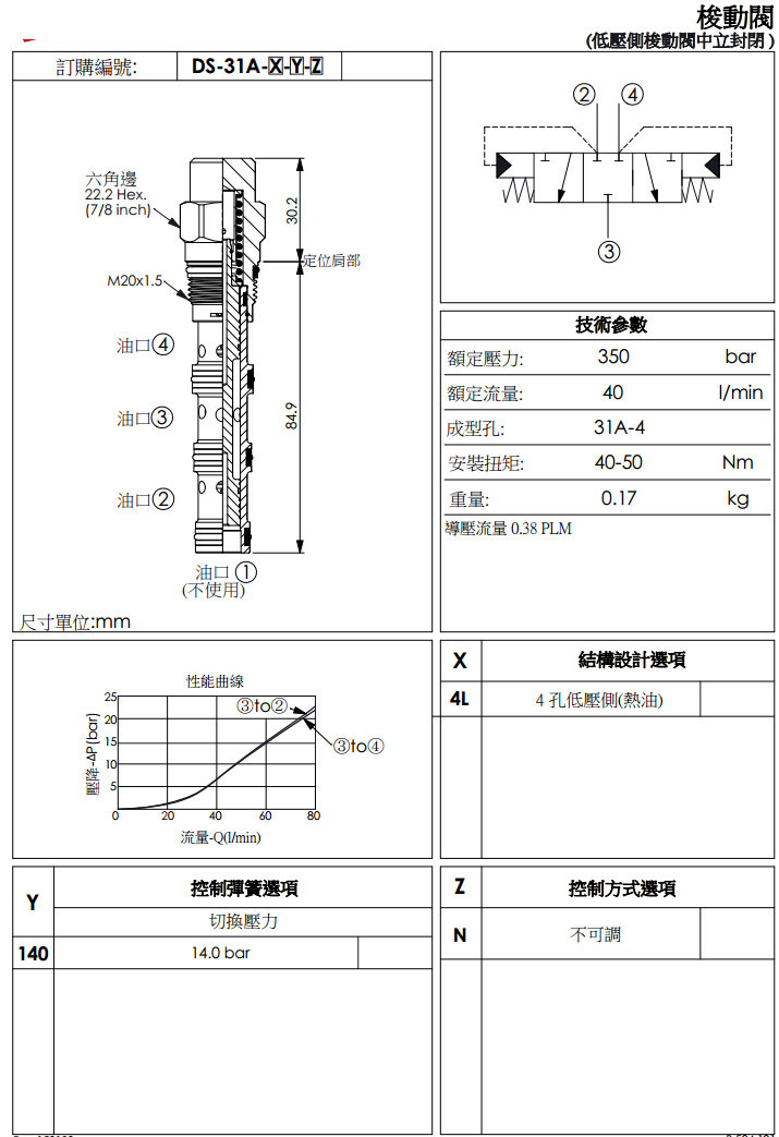 詳細信息 DS-31A-4L-140-N,winner梭動(dòng)閥