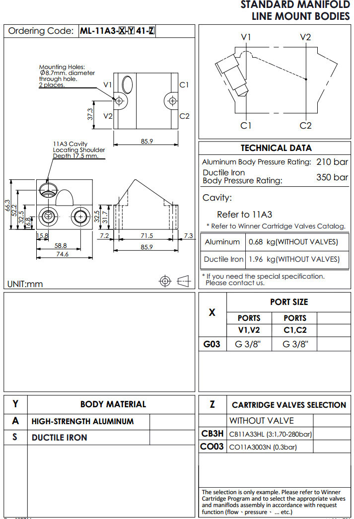 ML-11A3-G03-A41-CB3H,ML-11A3-G03-S41-CB3H,ML-11A3-G03-A41-CO03,ML-11A3-G03-S41-CO03,winner標準配管式油路板