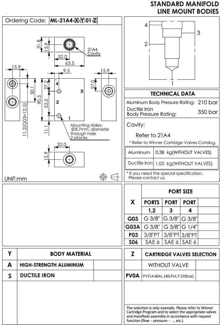 ML-21A4-G03-A01-PV0A,ML-21A4-G03A-A01-PV0A,ML-21A4-P03-A01-PV0A,ML-21A4-S06-A01-PV0A,winner標準配管式油路板