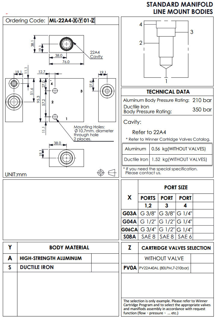 詳細信息 ML-22A4-G03A-A01-PV0A,ML-22A4-G04A-A01-PV0A,ML-22A4-G06CA-A01-PV0A,ML-22A4-S08A-A01-PV0A,winner標準配管式油路板