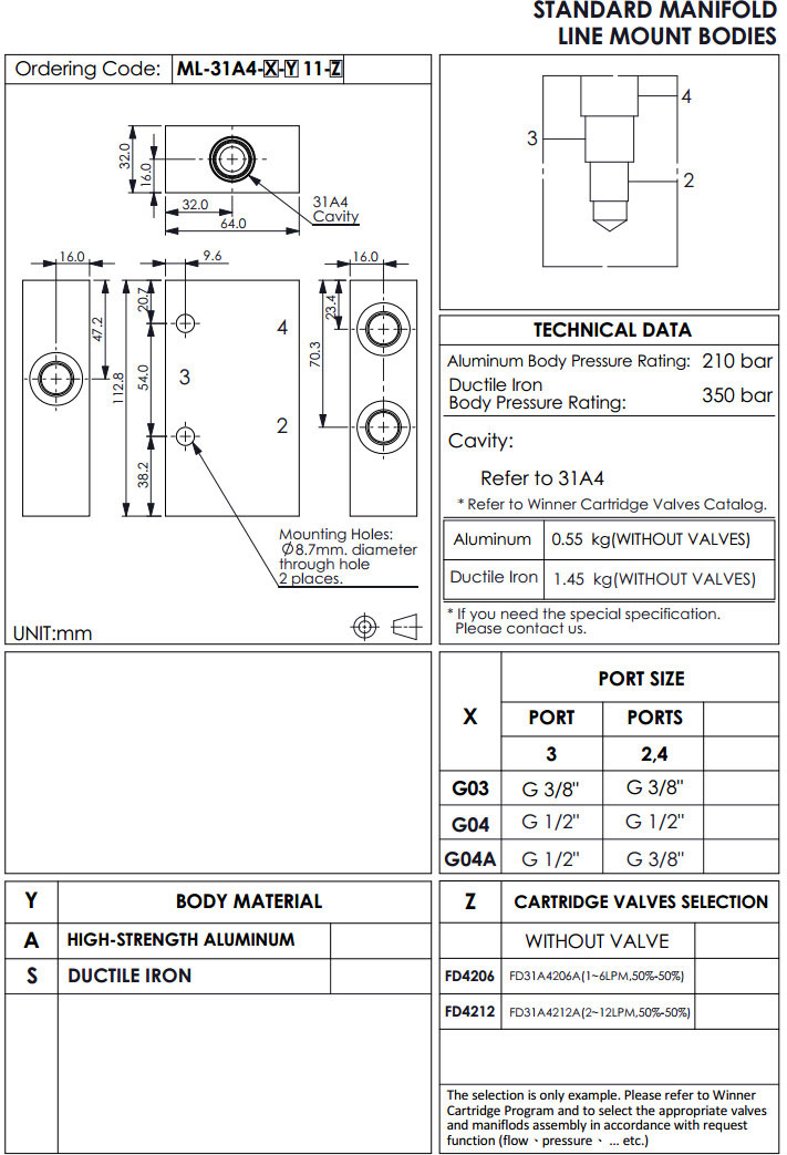 詳細信息 ML-31A4-G03-A11-FD4206,ML-31A4-G04-A11-FD4206,ML-31A4-G04A-A11-FD4206,winner標準配管式油路板