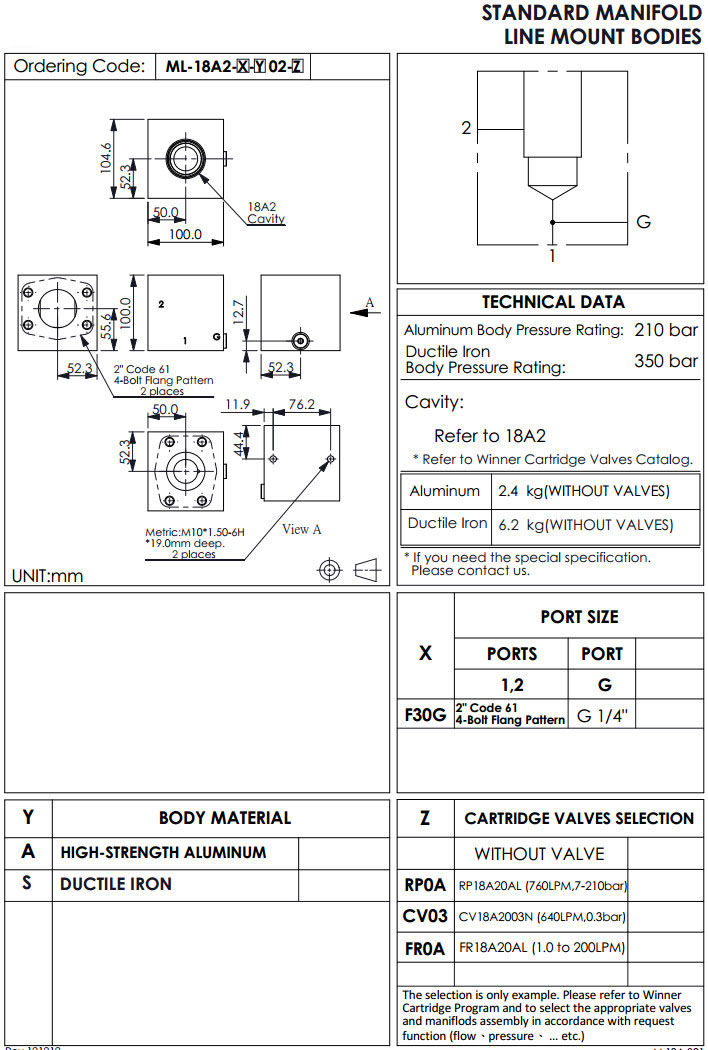 ML-18A2-F30G-A02-RP0A,ML-18A2-F30G-S02-RP0A,ML-18A2-F30G-A02-CV03,winner標準配管式油路板