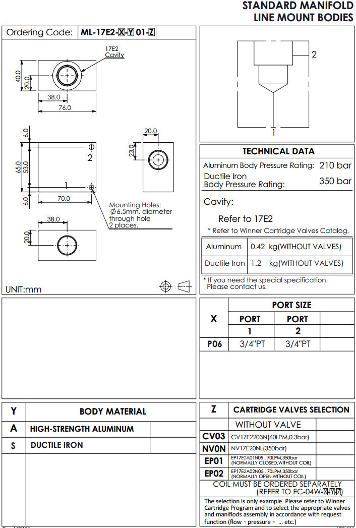 ML-17E2-P06-A01-CV03,ML-17E2-P06-S01-CV03,ML-17E2-P06-A01-NV0N,ML-17E2-P06-S01-NV0N,winner標準配管式油路板