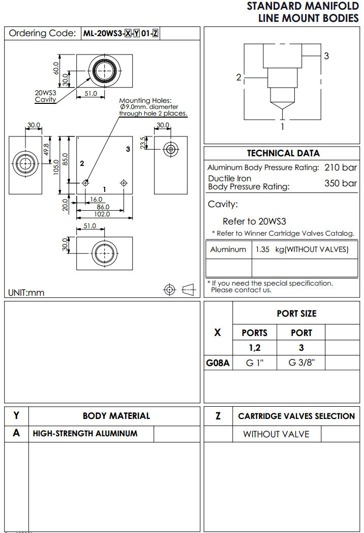 詳細信息 ML-20WS3-G08A-A01,winner標準配管式油路板