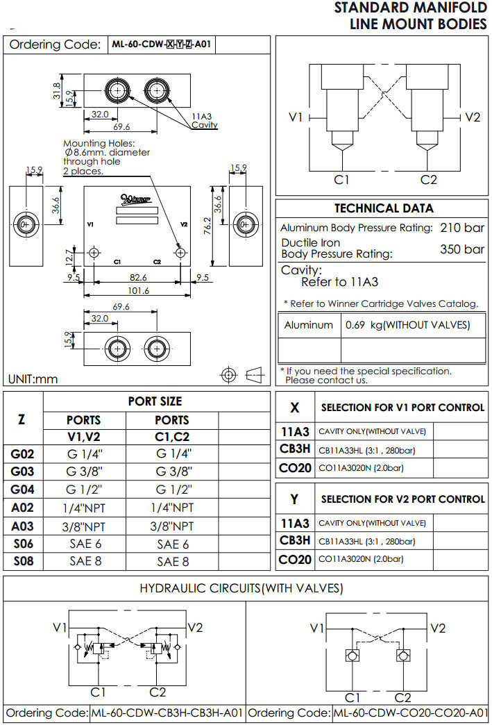 ML-60-CDW-11A3-11A3-G02-A01,ML-60-CDW-CB3H-CB3H-G02-A01,ML-60-CDW-CO20-CO20-G02-A01,winner標準配管式油路板