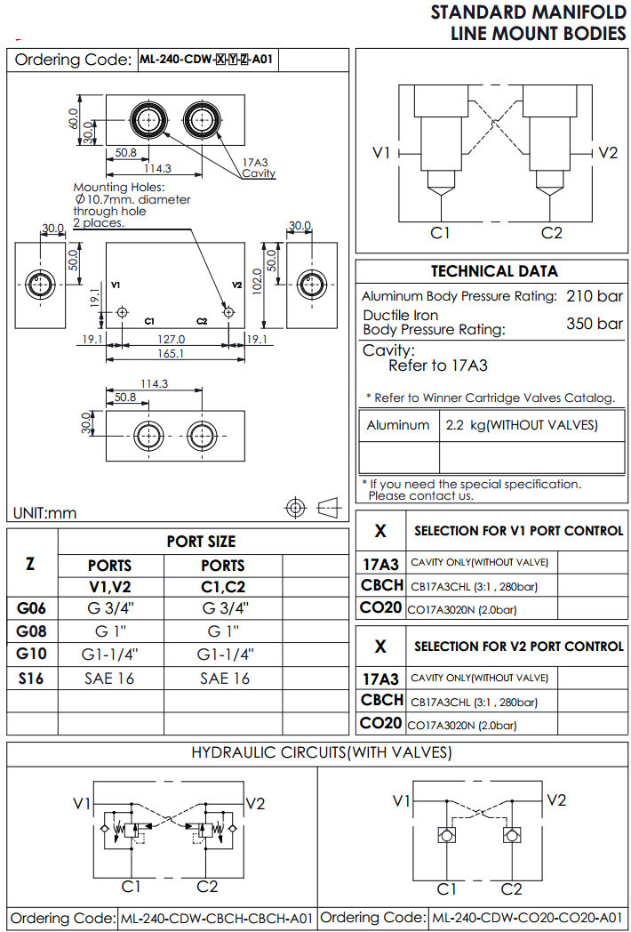 詳細信息 ML-240-CDW-17A3-17A3-G06-A01,ML-240-CDW-CBCH-CBCH-G06-A01,ML-240-CDW-CO20-CO20-G06-A01,winner標準配管式油路板