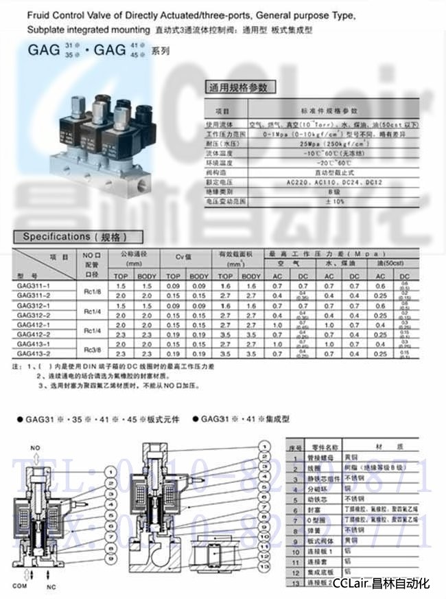 詳細信息 GAG311-1-0,GAG311-1-2,GAG311-1-3,GAG311-1-4,流體控制閥
