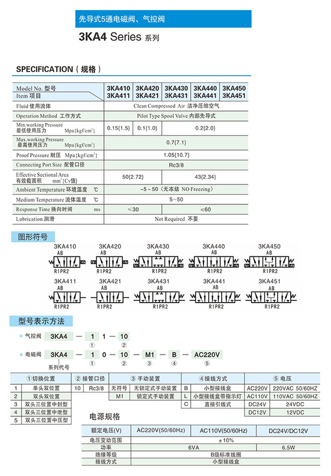 3KA411-10,3KA421-10,3KA431-10,3KA441-10,3KA451-10,先導式5通氣控閥
