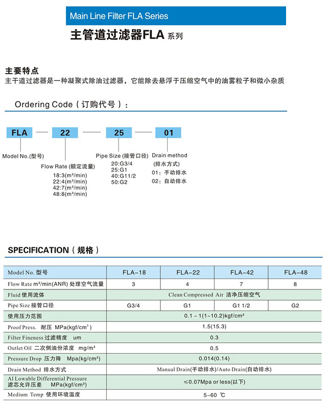 詳細信息 FLA-18,FLA-22,FLA-42,FLA-48,主管道過(guò)濾器