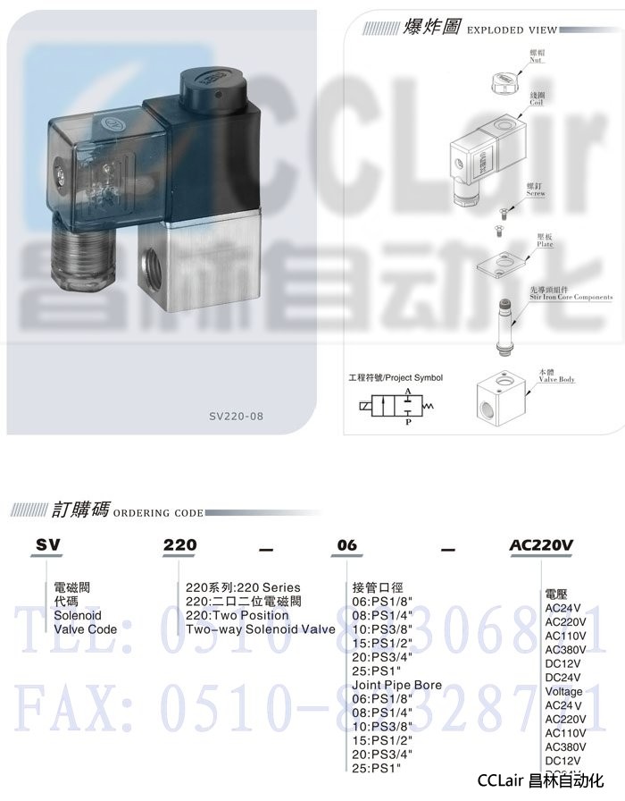 SV220-06,SV220-08,SV220-10,SV220-15,SV220-20,SV220-25,電磁閥
