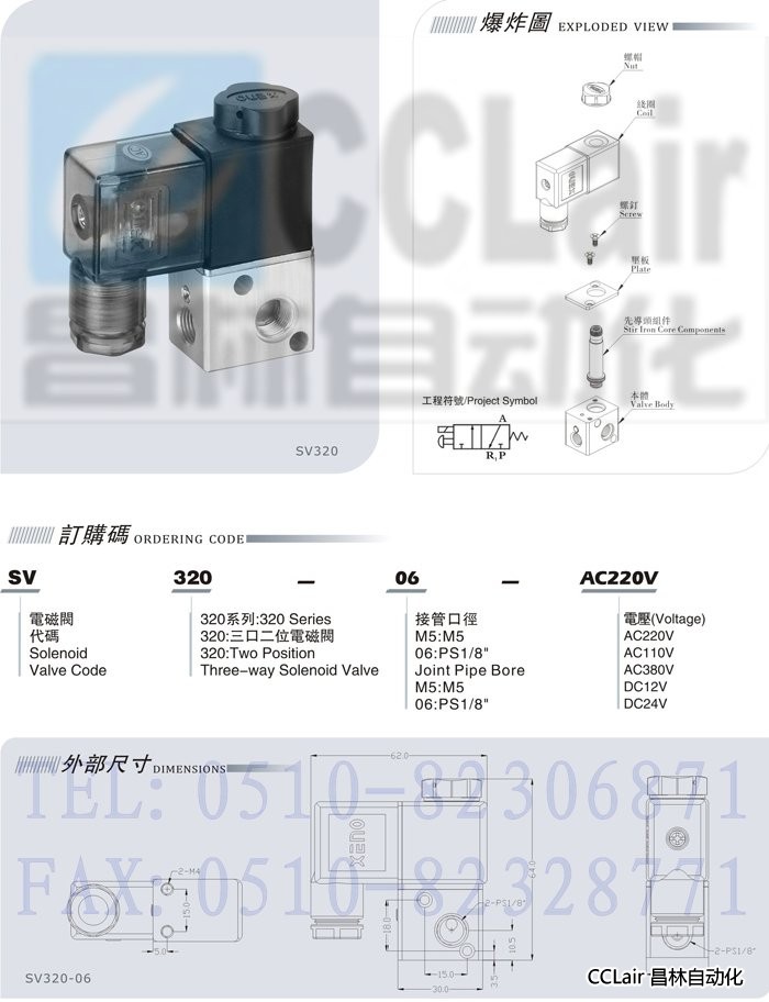 詳細信息 SV320-M5,SV320-06,電磁閥
